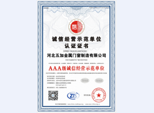 群策群利的创新与,雄厚的经济实力,高素质的管理队伍,完善的售后服务管理体系,加上您的支持,赖于这些,我们更加自信,更加踏踏实实的实现一个又一个目标,完成特种门窗的开发与销售,争取做到特种门窗被社会和客户更多认可和信任,于是您看到的五加是一个正在壮大的五加,一个前途无量的五加。