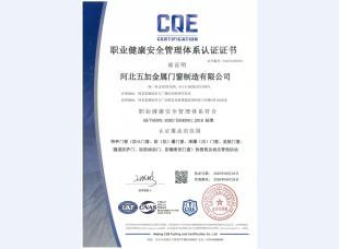 职业健康安全管理体系认证证书2025年-2028年英文版